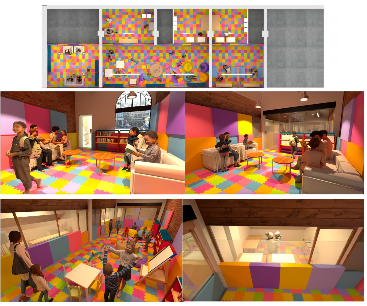 The childcare area will be specifically designed for safety, comfort, and developmental engagement. It will include clearly defined zones for play, learning, quiet time, and group activities. All flooring, furniture, and materials will meet child-safety standards and be age-appropriate.