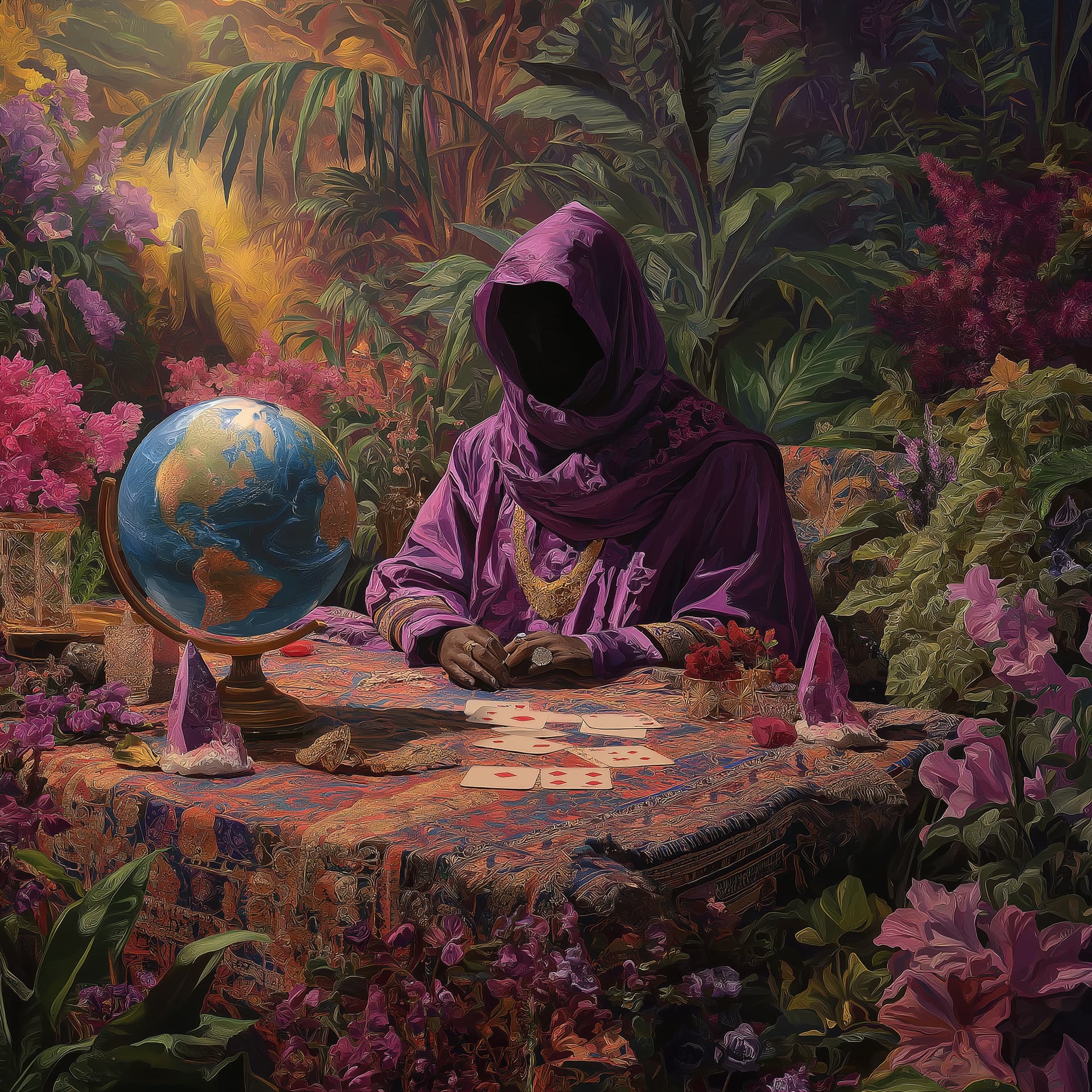 I will get a bunch of really fun decorations for the booth, including a big table cover, a Globe, a deck of ‘Community Oracles’ cards, and I will dress in a robe.